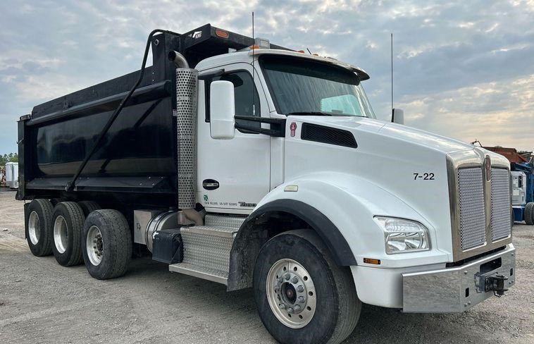 The 2015 Kenworth T880 dump truck has 180,014 miles on the odometer and 7,135 hours on the meter, with mileage and hours subject to variation as the unit is still in use. Powered by a Paccar MX-13 12.9L eight-cylinder diesel engine and equipped with an Eaton Fuller 18-speed manual transmission, this truck delivers dependable performance for heavy-duty hauling. The chassis features triple axles with a steerable pusher axle and air suspension for enhanced control and stability. The Load…