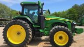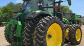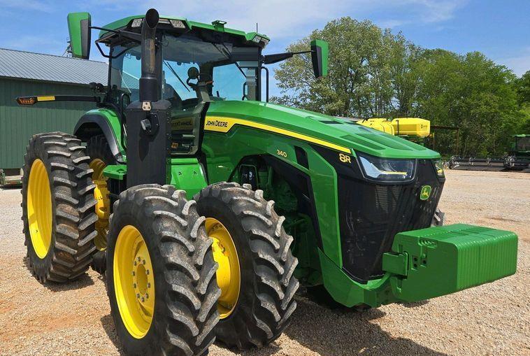 This 2021 John Deere 8R340 MFWD tractor has 1,028 hours on the meter and is powered by a John Deere 6090RX504 9.0L 6-cylinder diesel engine. It features an IVT (Infinitely Variable Transmission) with a left-hand reverser and differential lock for smooth, adaptable performance in the field. The operator’s station includes air conditioning, heat, and a John Deere display with auto steer capability for precision guidance. The tractor is equipped with a 1 3/4″ 1000 RPM PTO, three-point hitch with top link and quick attach, and connectivity features like a seven-pin outlet and ISOBUS outlet. Hydraulic capabilities include five rear remote sets, power beyond hydraulics, and 22 suitcase weights for added balance and performance. The front axle features ILS (Independent Link Suspension) for improved ride and traction. It rides on 420/85R34 front tires and 480/80R50 rear tires, with front and rear duals and six rear wheel weights for enhanced stability and pulling power.